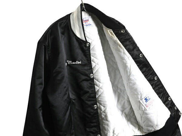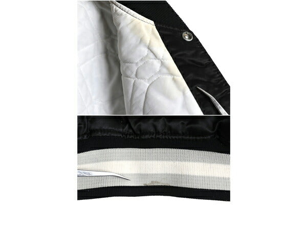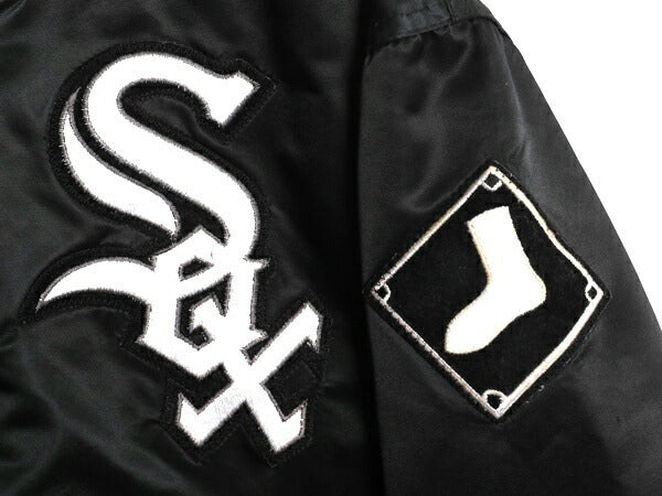 90s USA製 ホワイトソックス ナイロン サテン スタジャン メンズ S オールド MLB オフィシャル スターター 中綿 キルティング ライナー 黒