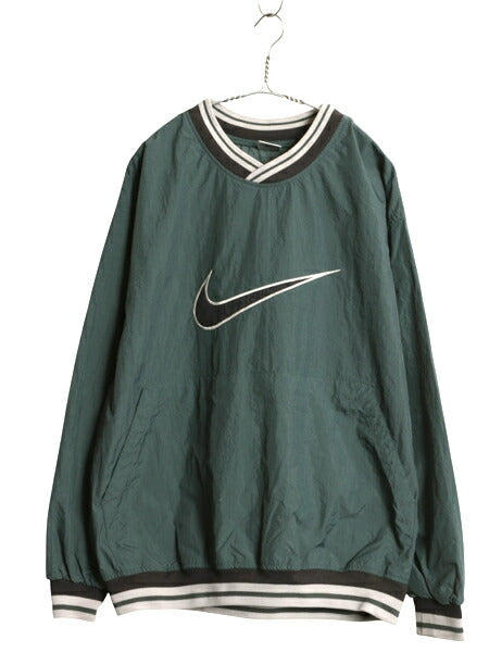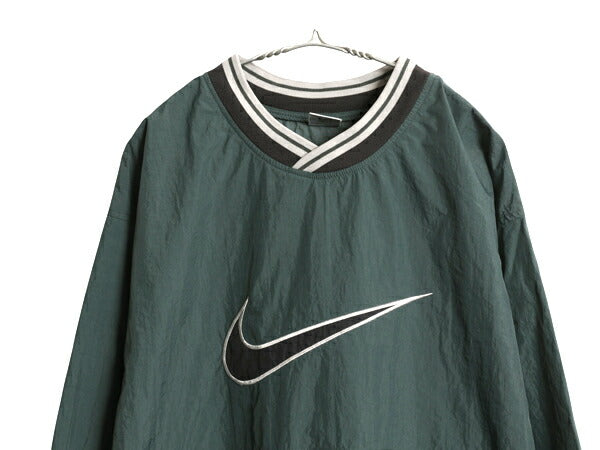 90s ナイキ ナイロン ジャケット メンズ L オールド プルオーバー ビッグ スウッシュ Vネック ピステ ウォームアップ ウィンドブレーカー