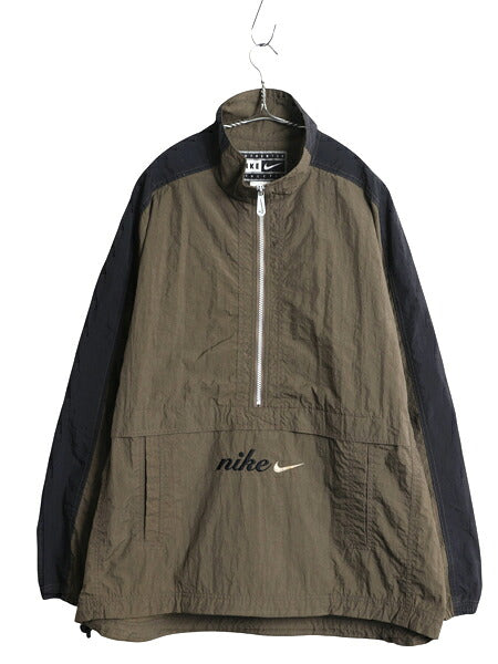 90s ナイキ ハーフジップ ナイロン ジャケット メンズ L オールド 古着 ウインドブレーカー プルオーバー ツートン スウッシュ アノラック