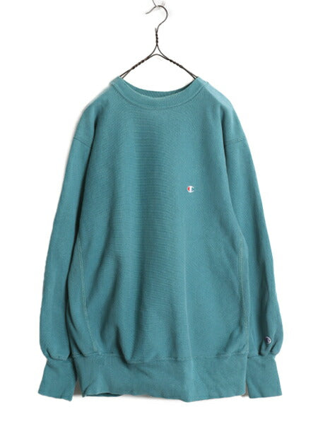 90s USA製 ★ チャンピオン リバースウィーブ スウェット メンズ XL 古着 オールド トレーナー 裏起毛 ワンポイント ヘビーウェイト 目付き