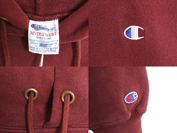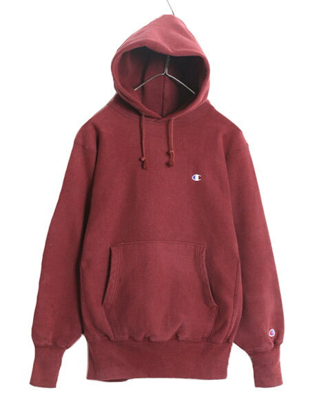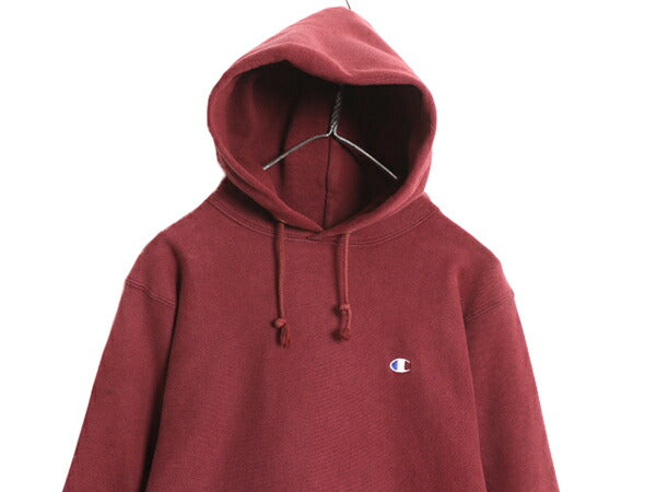 90s USA製 ★ チャンピオン リバースウィーブ スウェット フード パーカー メンズ M 90年代 Champion オールド 裏起毛 ワンポイント エンジ