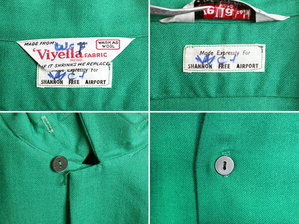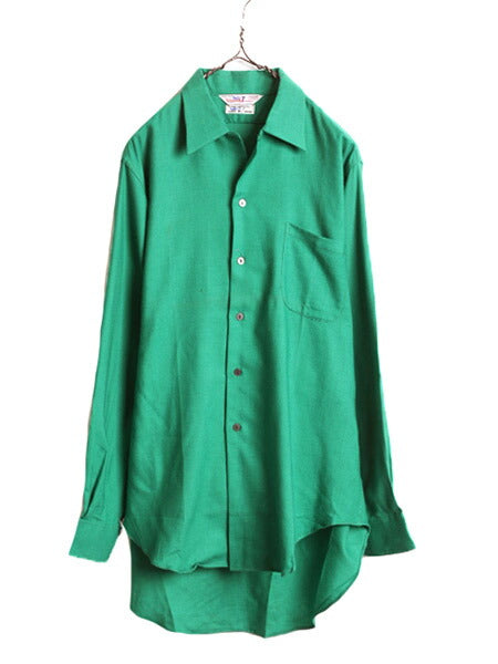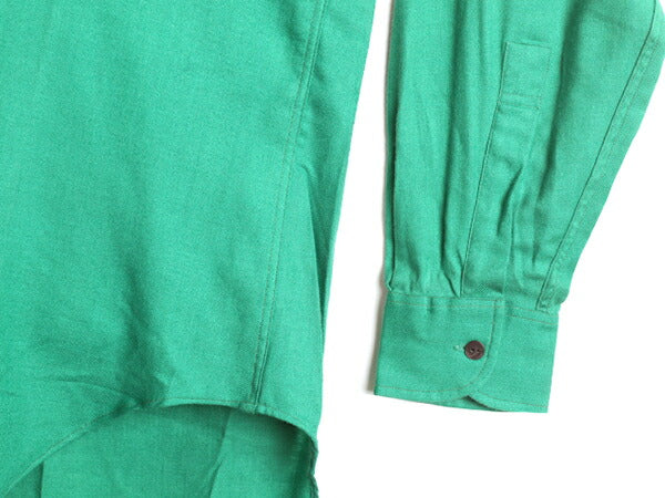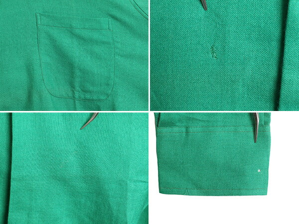 デッドストック 60s ★ 無地 ループ留め オープンカラー 長袖 ウール シャツ メンズ L 程/ 新品 60年代 ヴィンテージ 開襟 ポケット付き 緑