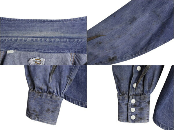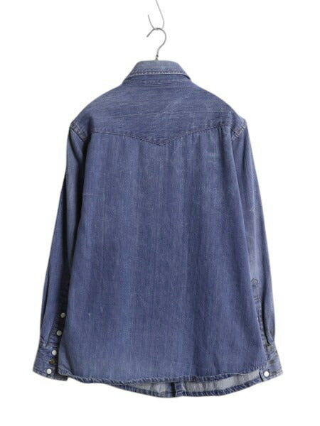 70s ★ BAR C デニム ウエスタン シャツ メンズ M / 古着 ヴィンテージ バットダイ コットン スナップボタン ヘビーウェイト ポケット付き