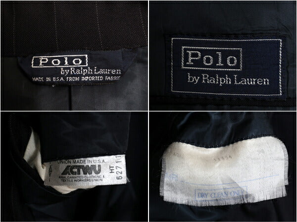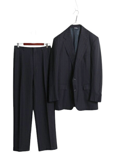 80s 90s USA製 ★ ポロ ラルフローレン セットアップ メンズ 42 L 程/ 古着 スーツ テーラード スラックス ウール チョーク ストライプ 紺