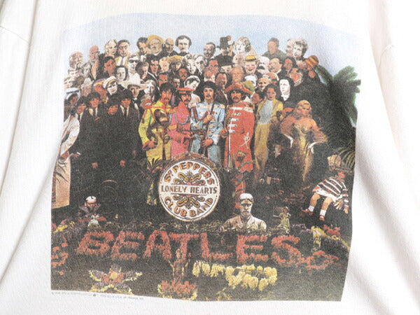 90s ★ ビートルズ イラスト プリント Tシャツ メンズ L 古着 オールド アップル オフィシャル 当時物 バンド ロック シングルステッチ 白