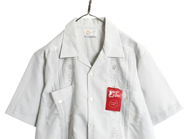 デッドストック 70s ★ オープンカラー 半袖 キューバ シャツ メンズ L メキシコ製 ヴィンテージ メキシカン オープンカラー 開襟 ボックス
