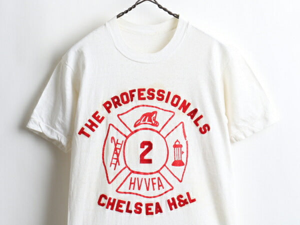 ~70's Unknown HVVFA 消防士 フェルト ワッペン プリント 半袖 Tシャツ (XS 程)