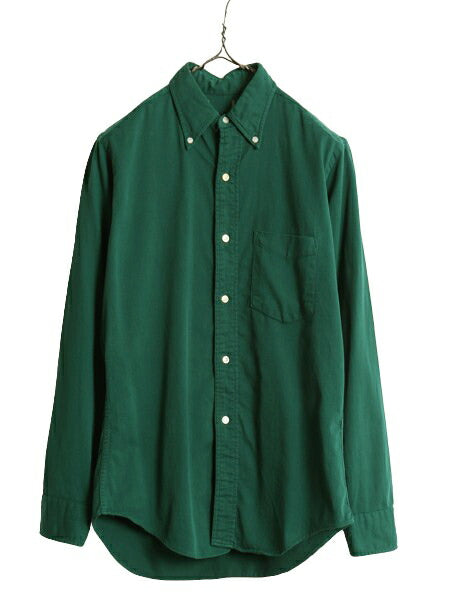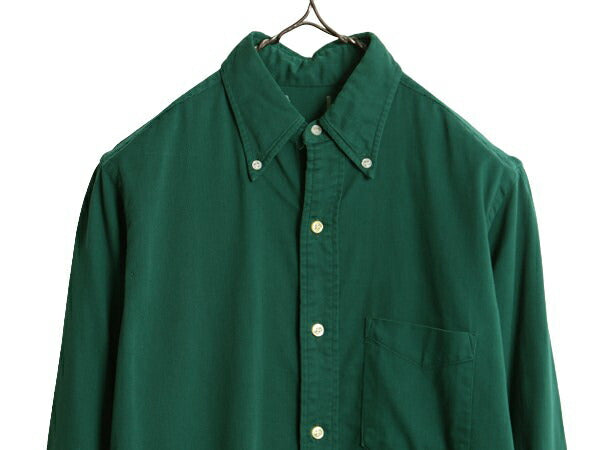 60s ★ 100% コットン ピケ 3点留め ボタンダウン シャツ メンズ S / 古着 60年代 ヴィンテージ 長袖シャツ BD 無地 スリム テーパード 緑