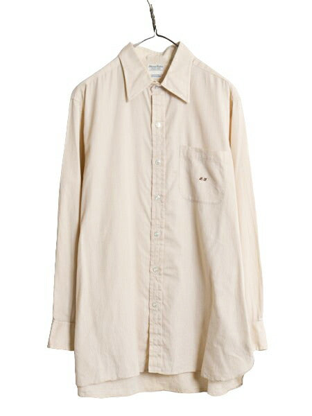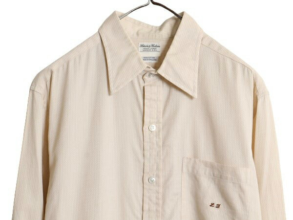 70s イギリス製 ★ Harvie & Hudson 織り柄 長袖 シャツ メンズ L / 70年代 ヴィンテージ ポケット付き 100% コットン ワンポイント 英国製