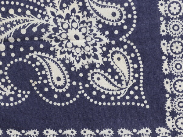 60s USA製 ★ パリス TOWER ペイズリー x ドット バンダナ / 小物 ヴィンテージ 水玉 セルビッジ 耳付き コットン ハンカチ スカーフ 紺