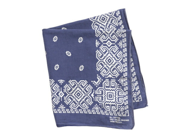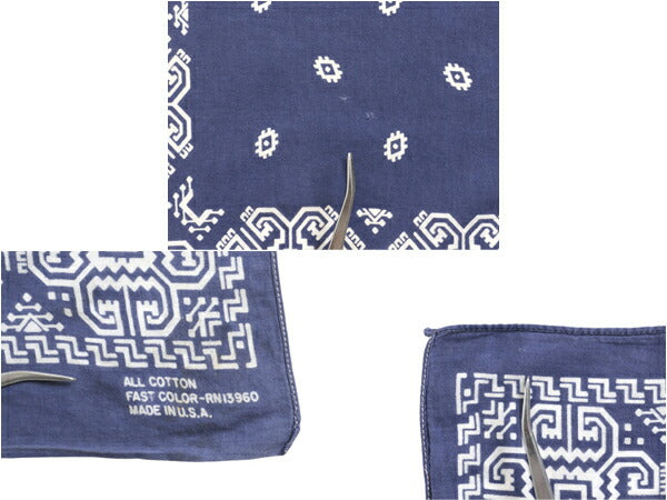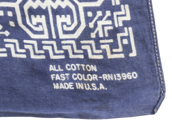 60s 70s USA製 ★ パリス ライトニング柄 バンダナ / 小物 ヴィンテージ ナバホ ネイティブ セルビッジ 耳付き コットン ハンカチ ネイビー