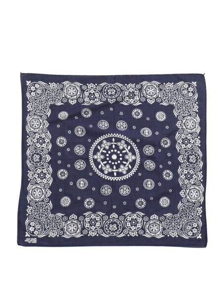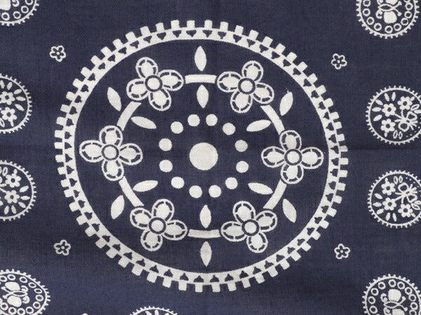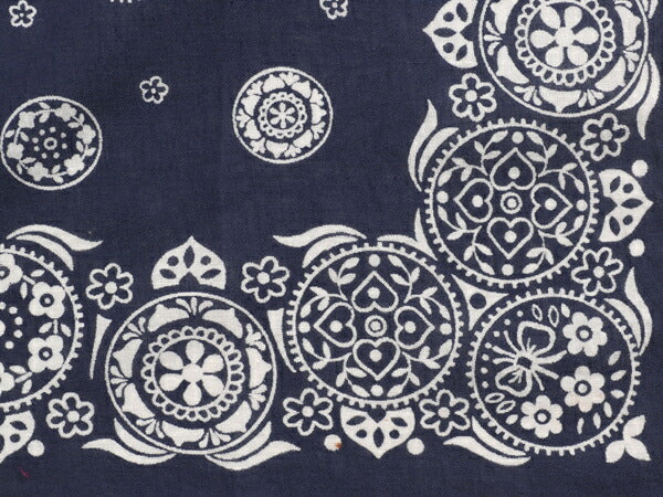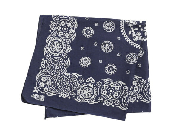 60s USA製 ★ パリス フラワー柄 バンダナ / 小物 ヴィンテージ 花柄 サークル セルビッジ 耳付き コットン ハンカチ スカーフ ネイビー