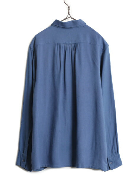 デッドストック 40s ★ BVD レーヨン 長袖 シャツ メンズ L 程 新品 40年代 USA製 ヴィンテージ ボックス フラップポケット ブルー 無地 青