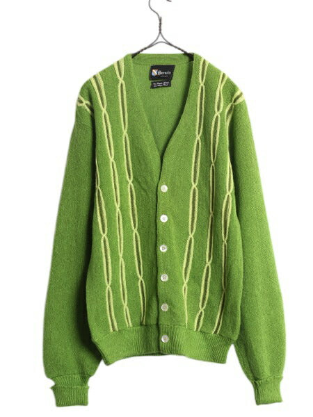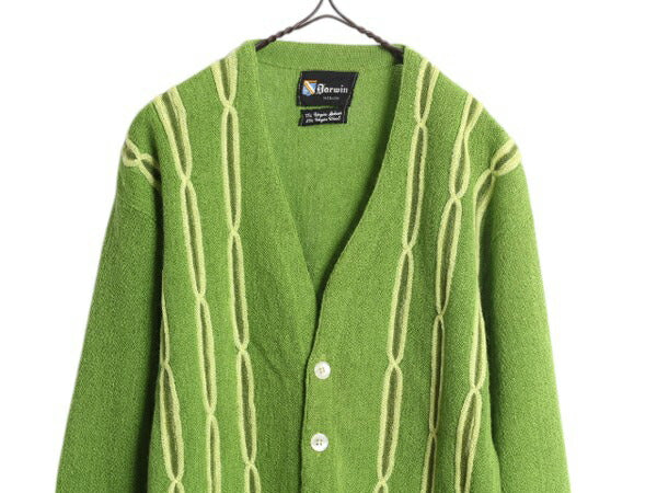 70s ★ Darwin 3D 立体編み モヘア ニット カーディガン メンズ M / 古着 ヴィンテージ ウール セーター 前開き 羽織り 緑 重ね着 グリーン