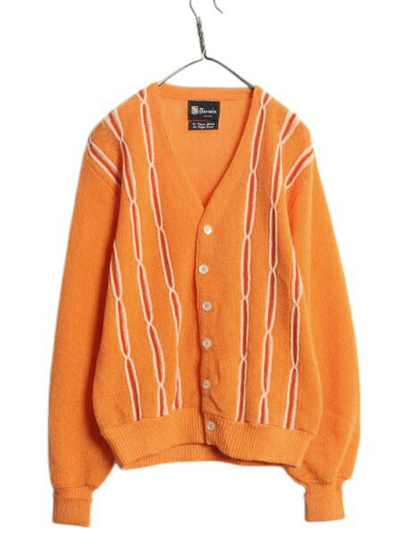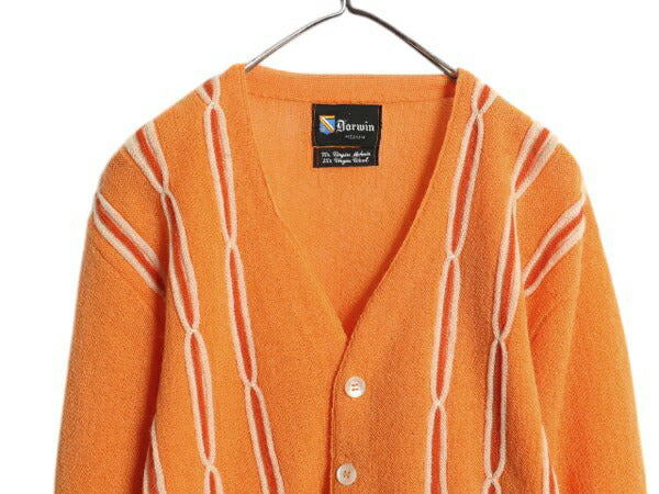 70s ★ Darwin 3D 立体編み モヘア ニット カーディガン メンズ M / 70年代 ヴィンテージ セーター 前開き 羽織り 重ね着 ウール オレンジ