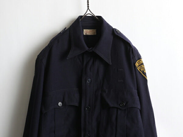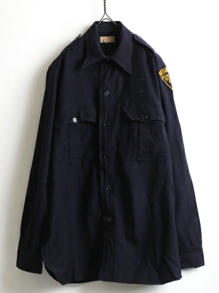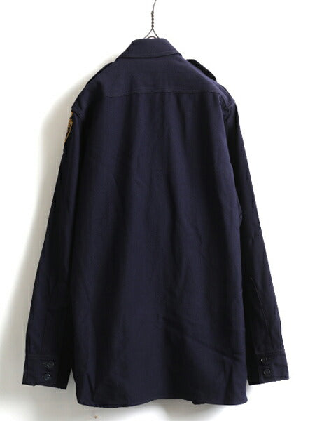 ★ The America 長袖 ウール オフィサー シャツ ( メンズ 男性 L程) ウールシャツ 長袖シャツ トップス 紺 ネイビー ビンテージ 古着 無地