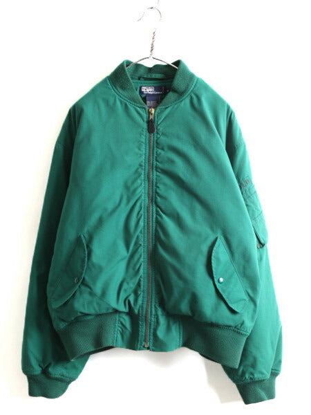 90s 大きいサイズ XL ★ POLO ポロ ラルフローレン MA-1 タイプ フライト ジャケット ( メンズ ) 古着 90年代 中綿 ボンバー ブルゾン 緑