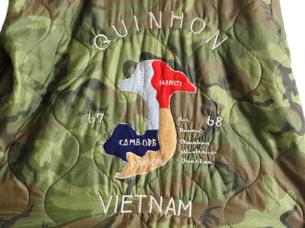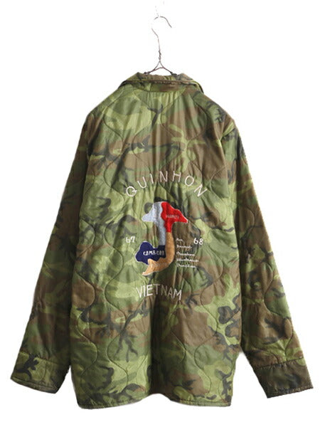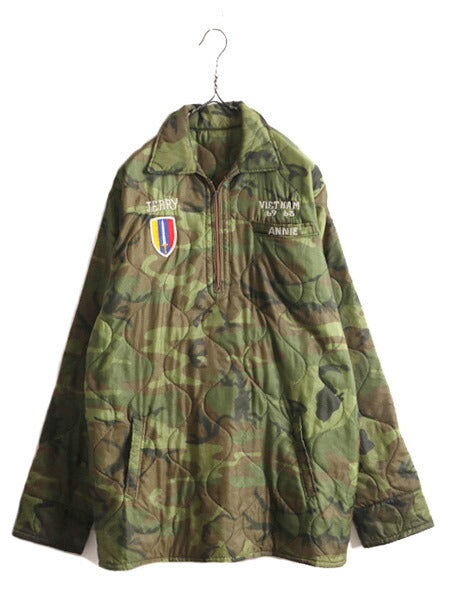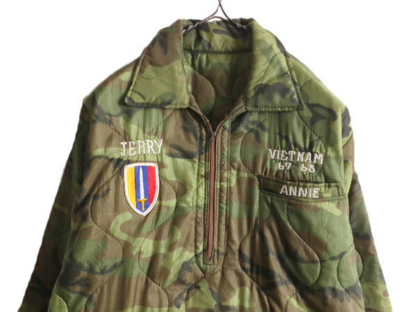 60s ★ ベトナム キルティング スーベニア ジャケット メンズ XL / 60年代 ベトジャン カモ 中綿 ナイロン プルオーバー ハーフジップ 刺繍