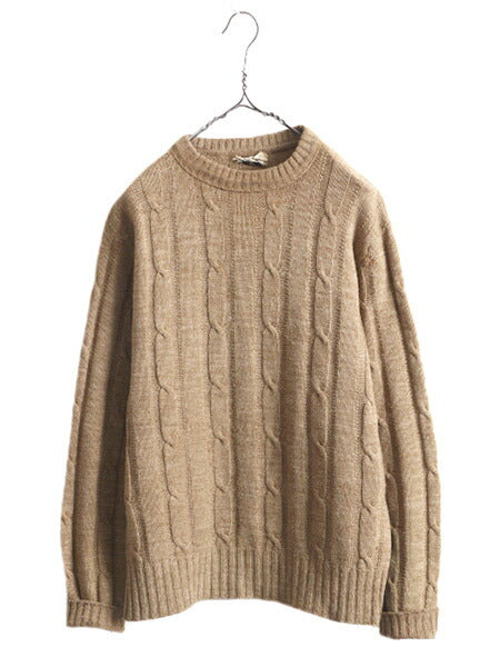 60s★ ケーブル ウール ニット セーター メンズ L / 古着 60年代 ヴィンテージ ニットセーター ケーブルニット 長袖ニット 無地 ベージュ