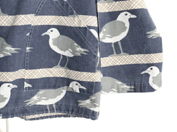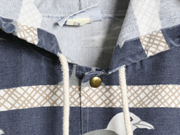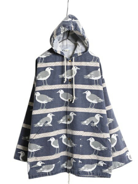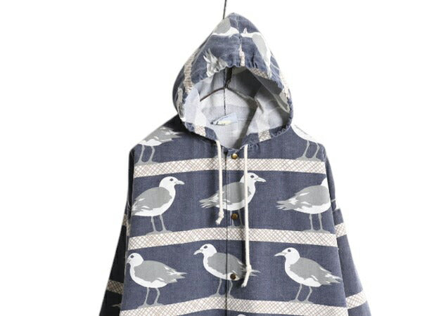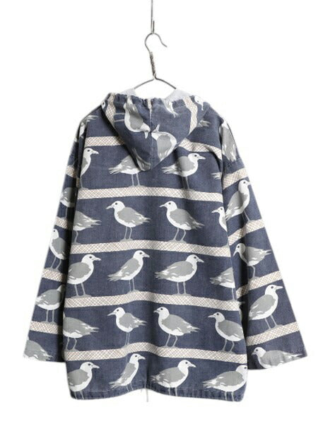 90s USA製 ★ ミシガンラグ カモメ 総柄 コットン ジャケット メンズ S M 古着 オールド アート イラスト フード パーカー ジャンパー 薄手