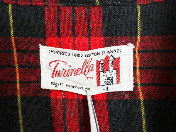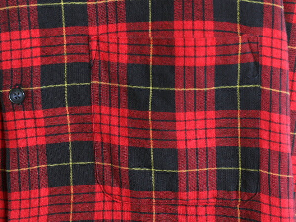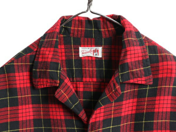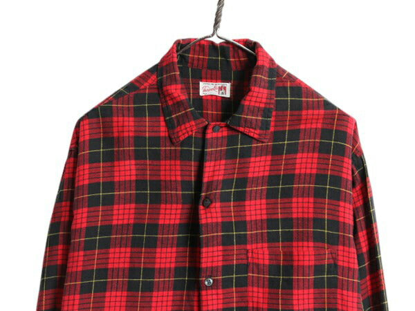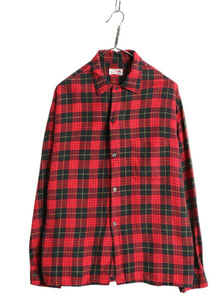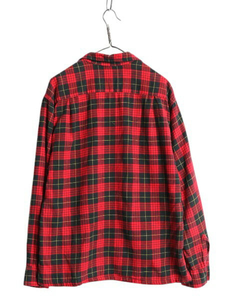 60s ★ タータン チェック ライト フランネル シャツ メンズ L / ヴィンテージ コットン ネル オープンカラー 開襟 ボックス ポケット付き