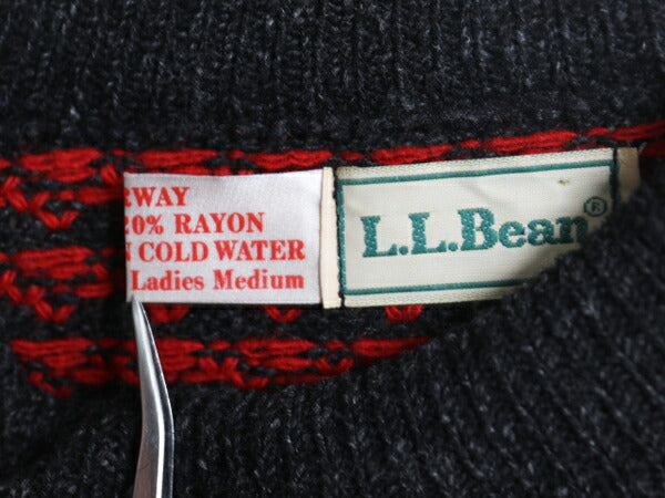80s ノルウェー製 ★ エルエルビーン バーズアイ ニット セーター レディース M メンズ S ヴィンテージ ウール ノルディック 総柄 ツートン