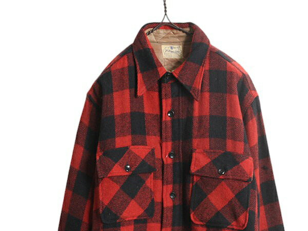 50s ★ ピルグリム マチ付き ブロック チェック ウール シャツ メンズ XL 程/ ヴィンテージ シアーズ CPO ジャケット ヘビーウェイト 赤 黒
