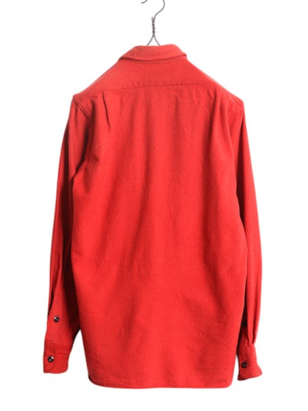 40s USA製 ★ hessler ウール フランネル シャツ メンズ S / 古着 ヴィンテージ 長袖シャツ ネルシャツ ポケット付き 胸ポケット 無地 赤