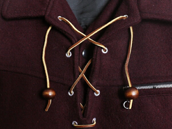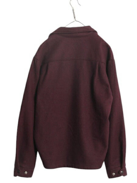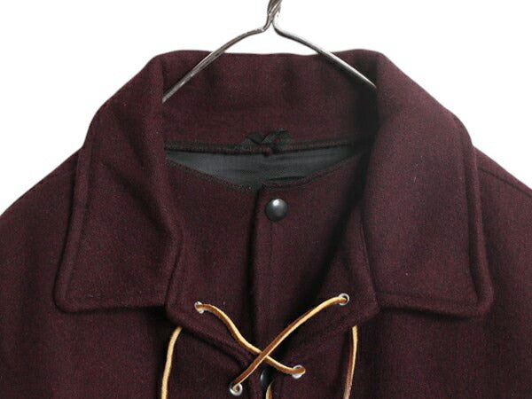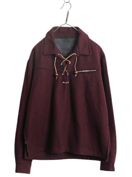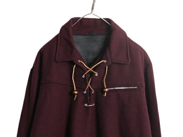 60s 70s ★ レースアップ メルトン ウール プルオーバー シャツ ジャケット メンズ L / ヴィンテージ ボックス ヘビーウェイト 無地 エンジ