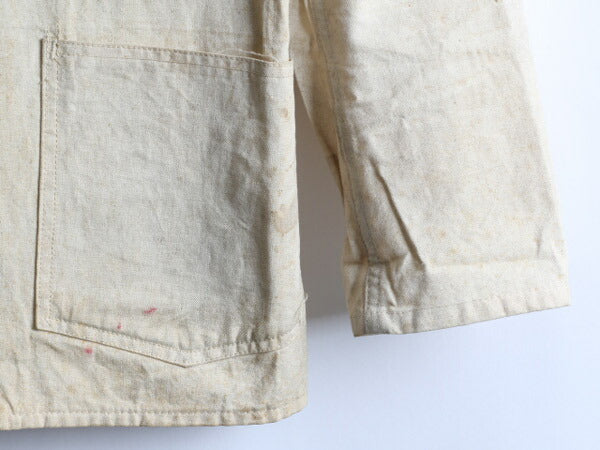 カラーは生成り、シミや黄ばみなどございますが元の色が白ではないので全体的に馴染んだ良い色合いかと思います。