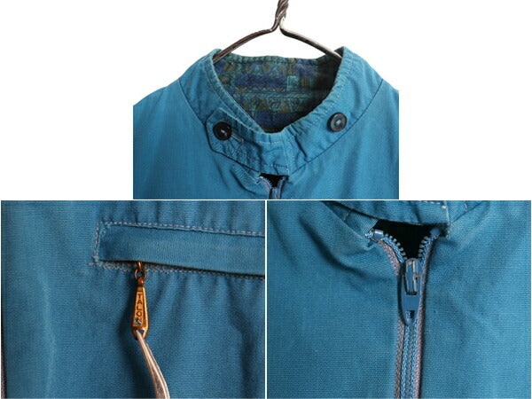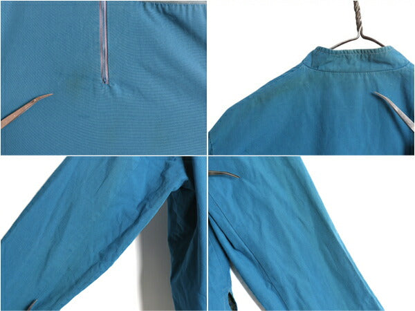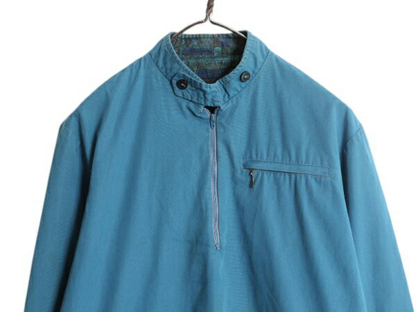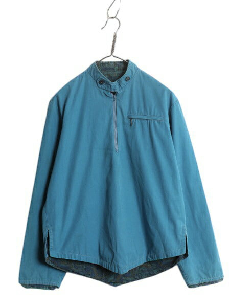 60s 70s USA製 ★ リバーシブル コットン プルオーバー ジャケット メンズ M 程 古着 ヴィンテージ ハーフジップ スタンドカラー 無地 総柄