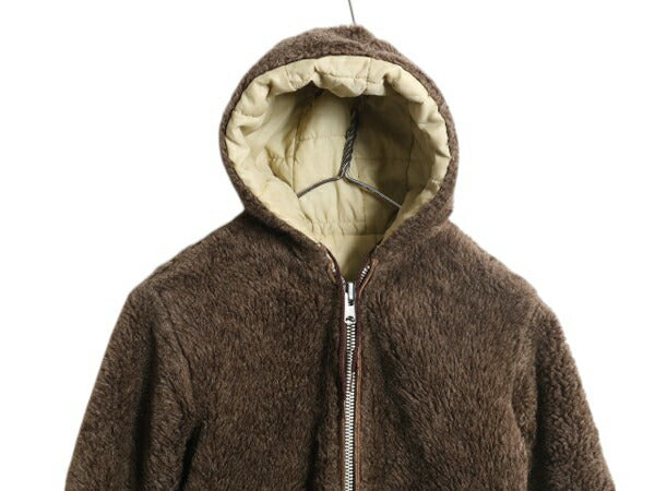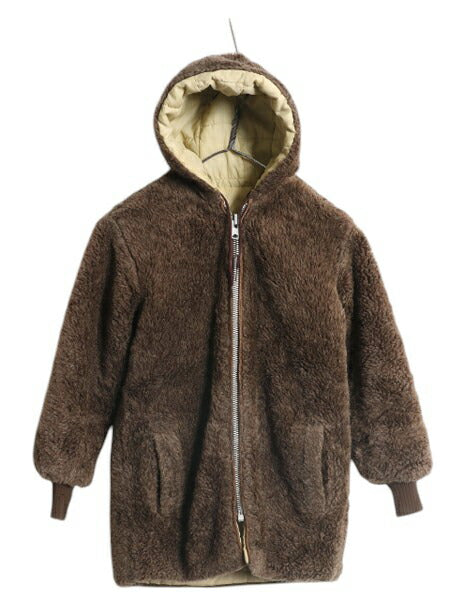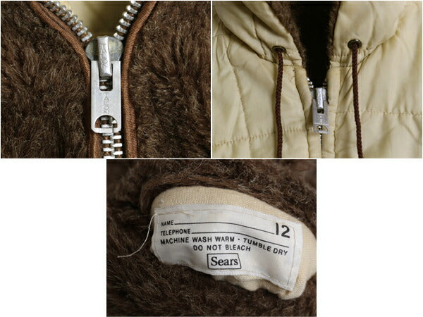 60s 70s ★ シアーズ フェイクファー フルジップ パーカー ジャケット レディース S ヴィンテージ リバーシブル パイル 中綿 ナイロン 茶