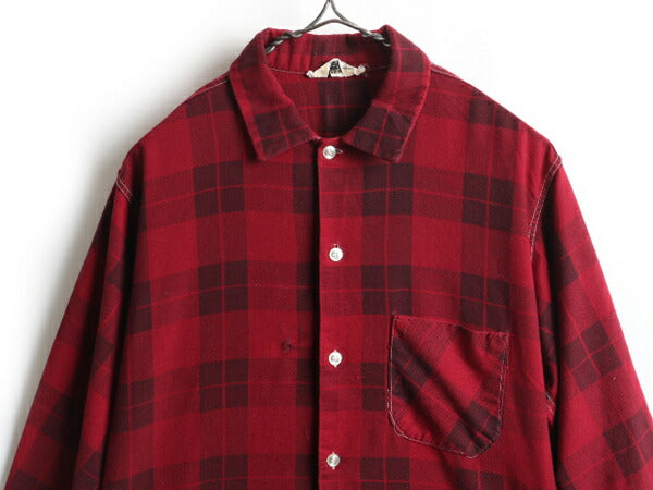 60's USA製 Snssex チェック柄 コットン ボックス 長袖 シャツ (M 程)