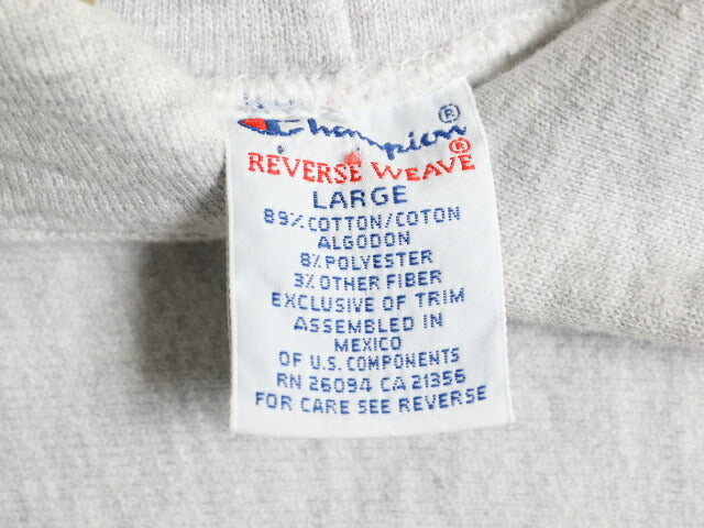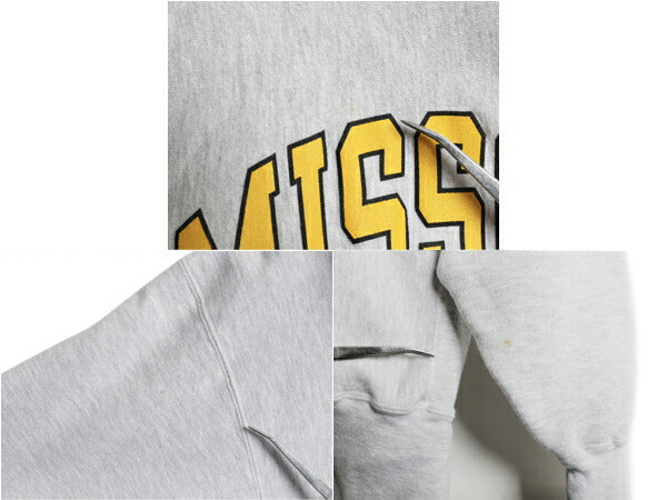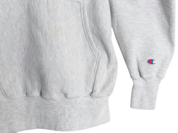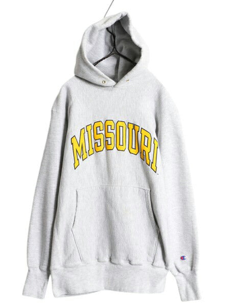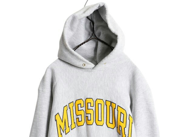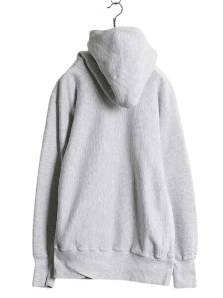 90s ★ チャンピオン リバースウィーブ カレッジ プリント スウェット フード パーカー メンズ L / 古着 オールド トレーナー 裏起毛 杢 灰