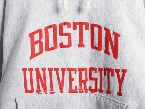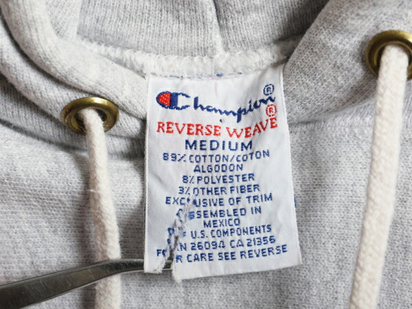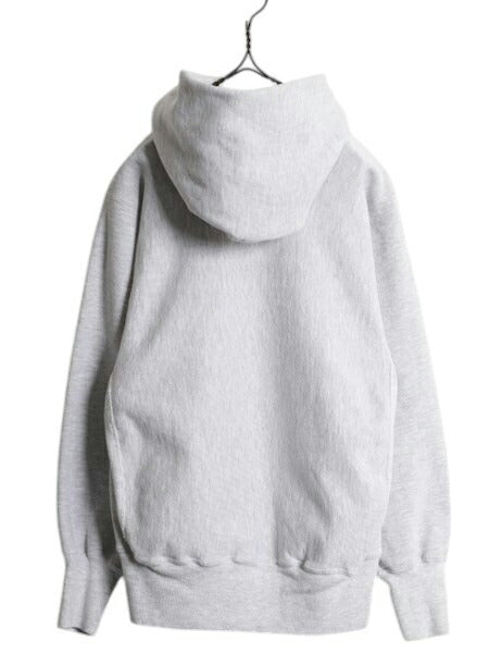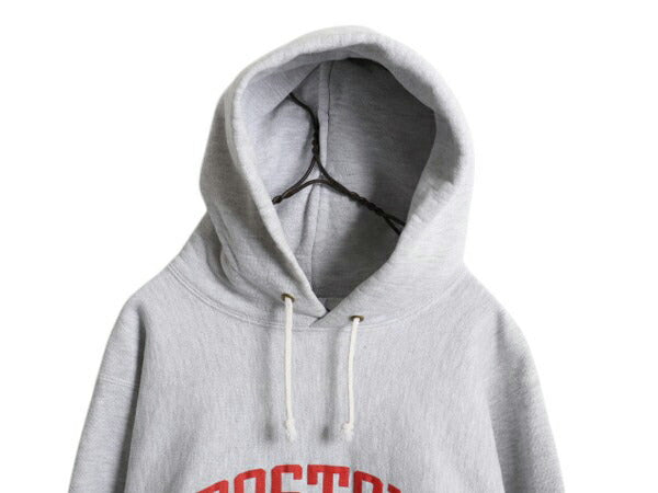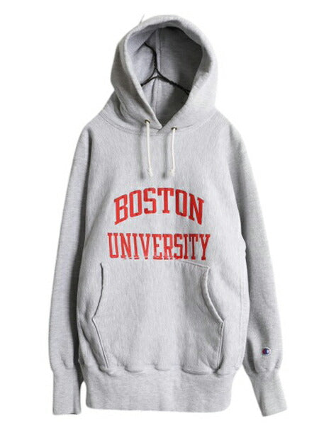 90s ★ チャンピオン リバースウィーブ カレッジ プリント スウェット フード パーカー メンズ M / 古着 オールド トレーナー 裏起毛 杢 灰