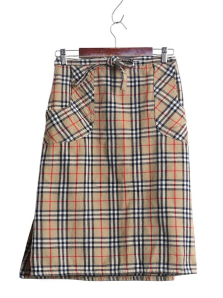 80s エルエルビーン ノバチェック ラップ スカート レディース L 80年代 ビンテージ ウール ノータック ひざ丈 巻きスカート ポケット付き