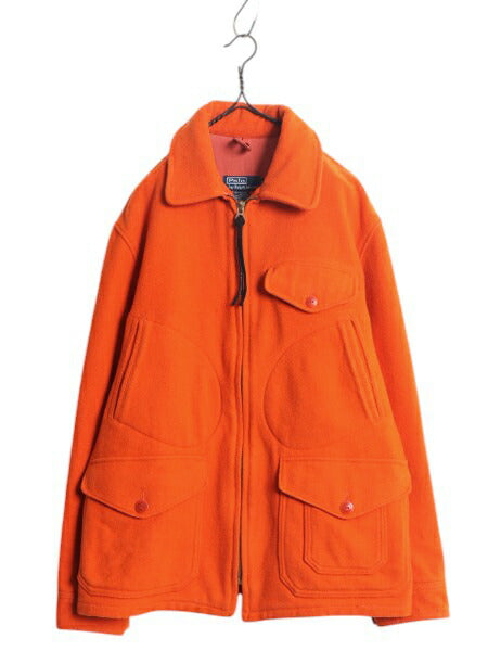 00s ★ ポロ ラルフローレン ウール ハンティング ジャケット メンズ M / オールド アウトドア スポジャケ フィールド フルジップ オレンジ