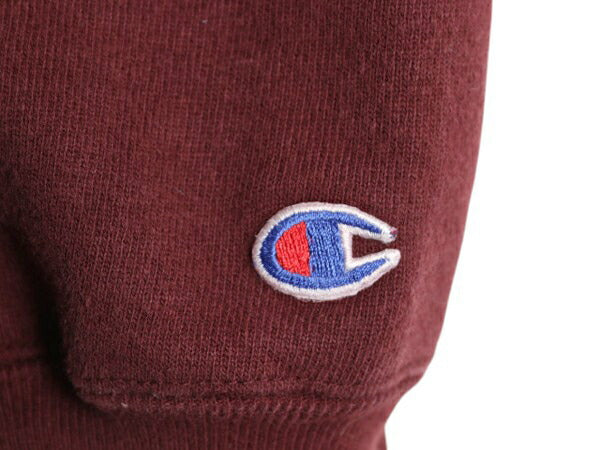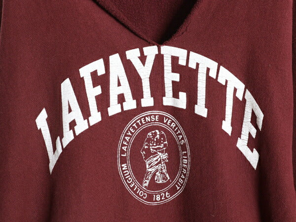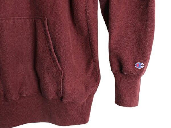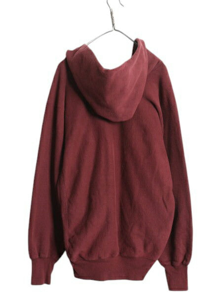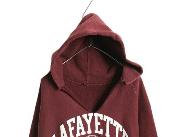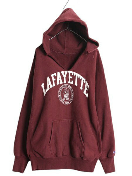 90s ★ チャンピオン リバースウィーブ カレッジ プリント スウェット フード パーカー メンズ XL 古着 オールド トレーナー 裏起毛 エンジ