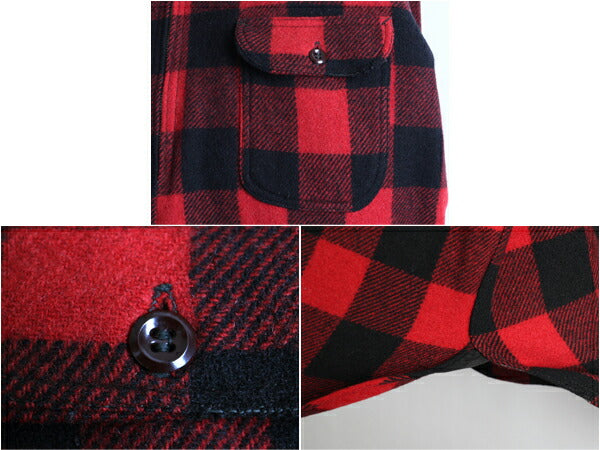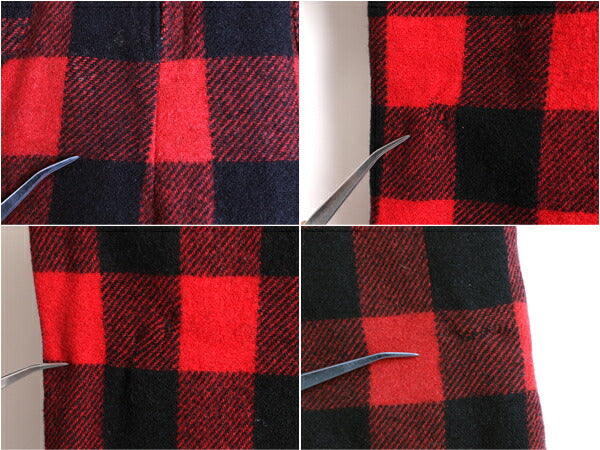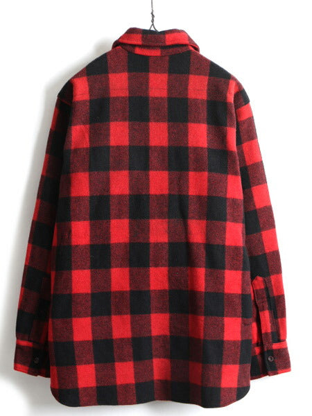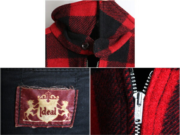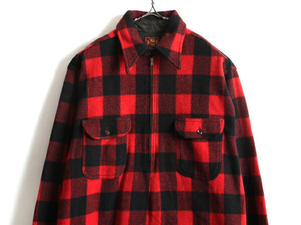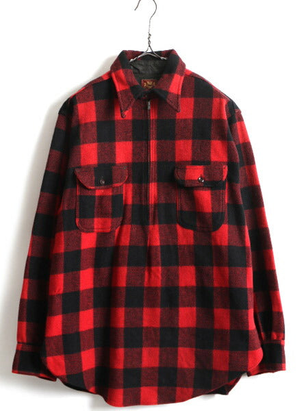 40s ビンテージ ★ IDEAL チンスト マチ付き コの字留め ハーフジップ プルオーバー チェック 長袖 ウール シャツ ( メンズ L ) 古着 赤 黒