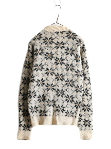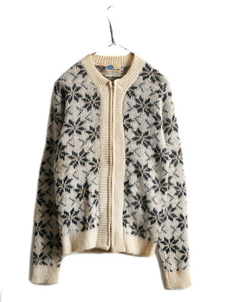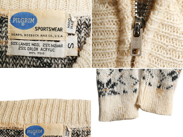 60s USA製 ★ ピルグリム ノルディック フルジップ モヘア ニット カーディガン メンズ S PILGRIM SEARS 60年代 ヴィンテージ 前開き 総柄