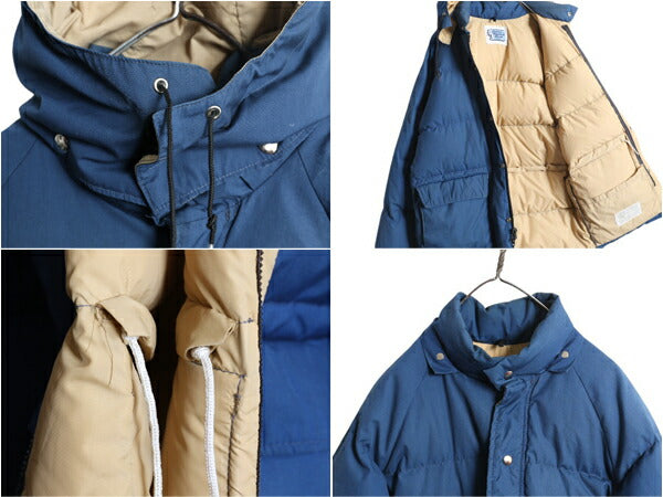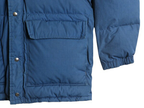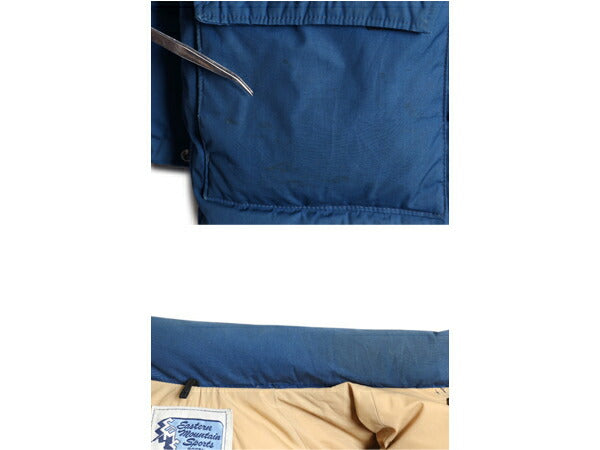 80s ★ EMS ダウン ジャケット メンズ L 程 古着 ヴィンテージ アウトドア フルジップ 脱着 フード付き ハイネック ブルゾン 無地 防寒 青