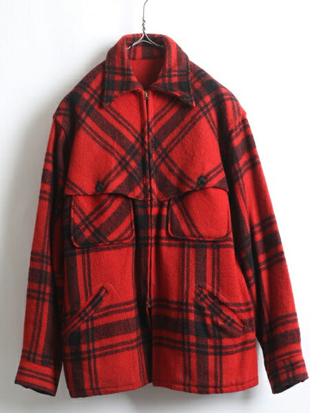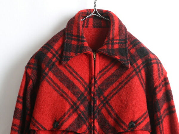 50's ビンテージ ★ フルジップ ウール マッキーノ ジャケット ( メンズ 男性 M程 ) 50年代 赤 黒 クルーザー ブルゾン アウター 古着 上着