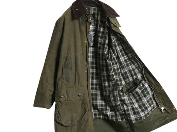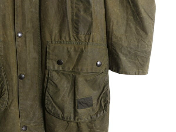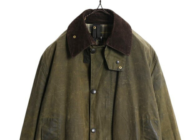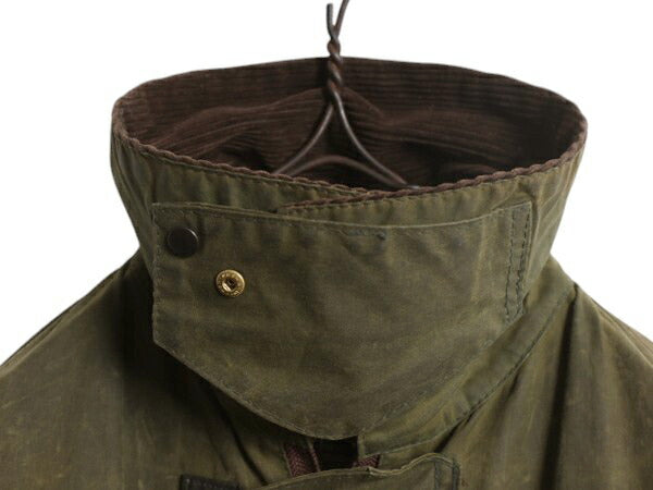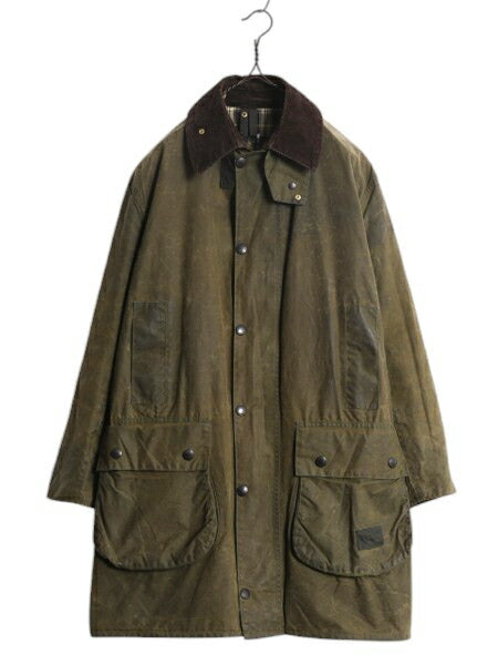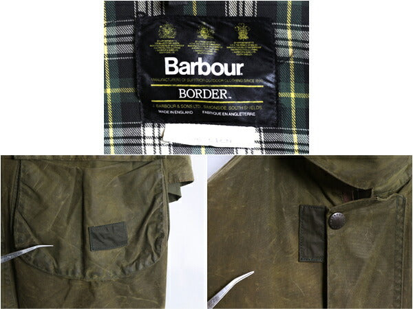 90s イギリス製 ★ バブアー ボーダー オイルド ジャケット メンズ M / 古着 オールド 3ワラント ハーフ コート ハンティング アウトドア