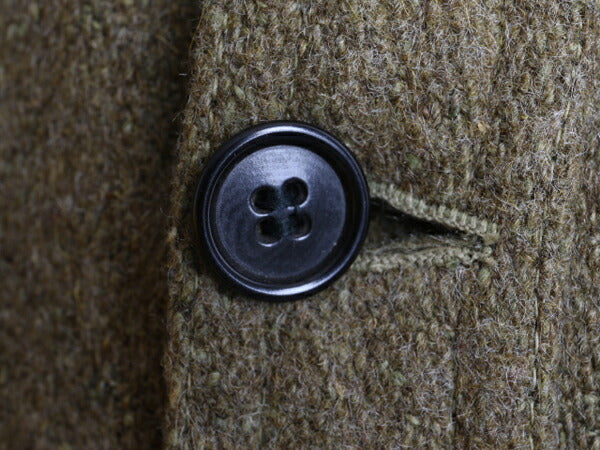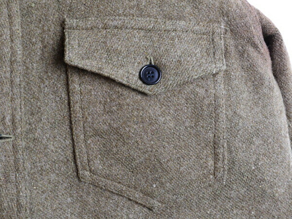 やや尖った襟にははダブルステッチ、両胸フラップポケット、フルオリジナルボタン、マチはコットン生地を使用です。