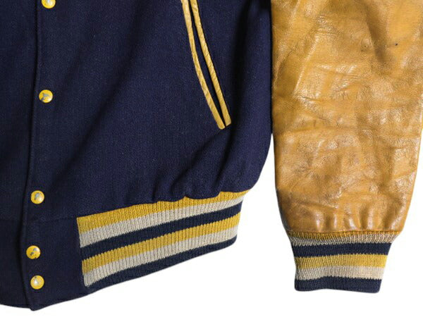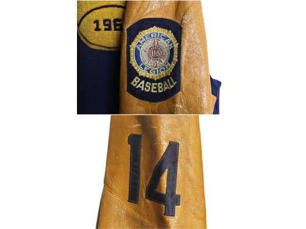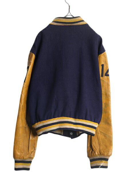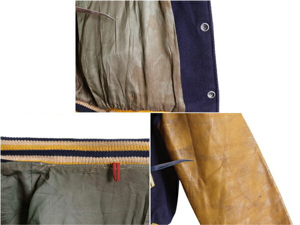 60s USA製 ★ HATCHERS 袖レザー ウール スタジャン メンズ L 程/ 古着 ヴィンテージ サガラ ワッペン付き アワード ブルゾン ツートン