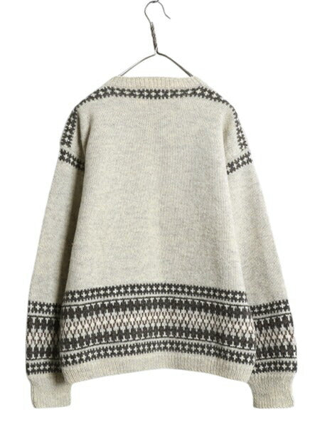60s 70s ノルウェー製 ★ HUSFLIDEN ノルディック ハンドニット セーター メンズ L 程/ 古着 ヴィンテージ 手編み ウール 総柄 バーズアイ