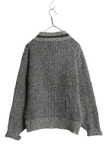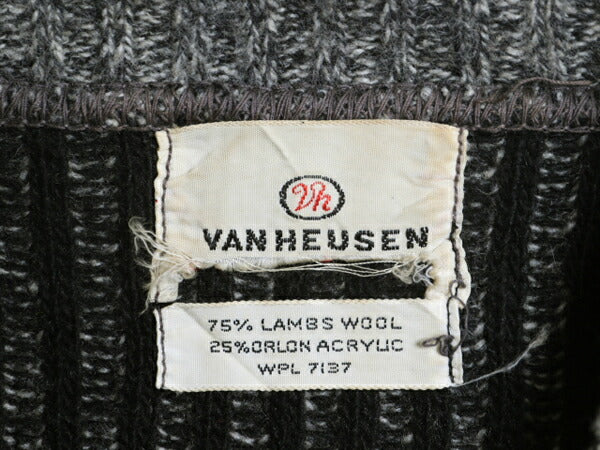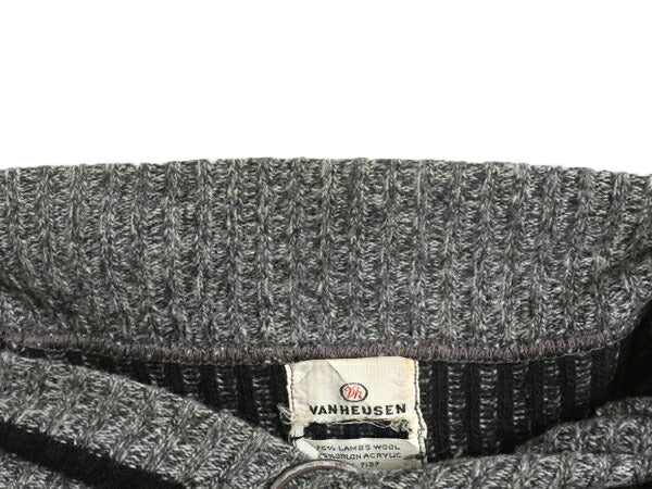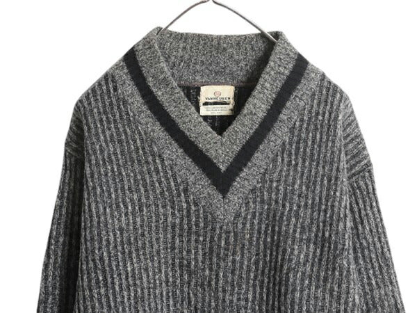 60s ★ ヴァンヒューゼン Vネック ラム ウール ニット セーター メンズ L / ヴィンテージ チルデン タイプ リブ編み チャンキー モノトーン