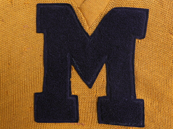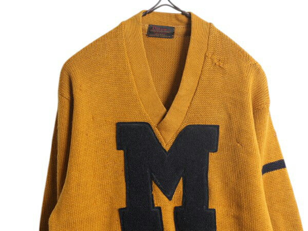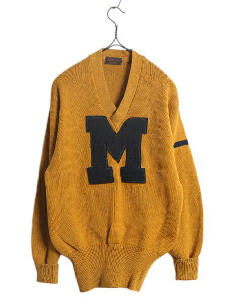 40s USA製 ★ ウィルソン レタード ニット セーター メンズ S / 古着 ヴィンテージ Vネック アワード サガラ ワッペン付き ウール ゴールド