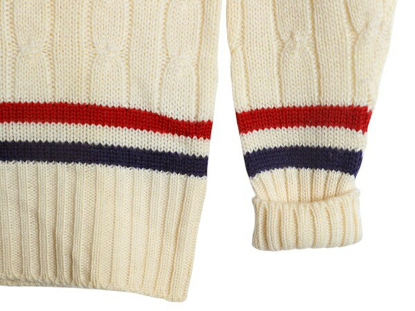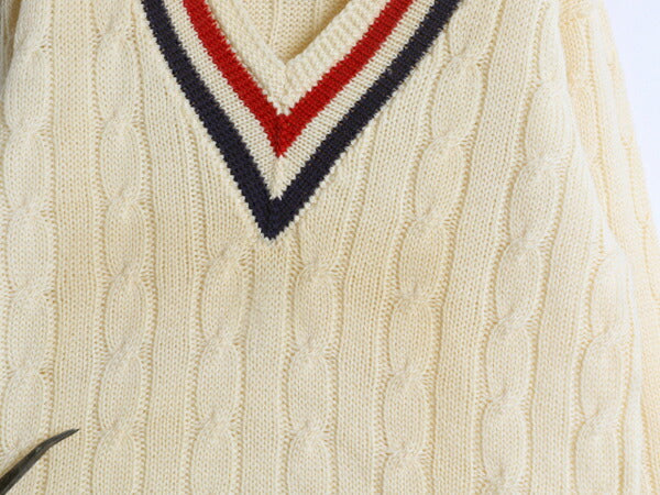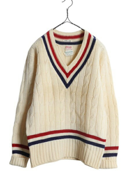 60s イギリス製 ★ Abercrombie&Fitch × JAEGER チルデン ニット セーター メンズ M / ヴィンテージ ウール Vネック ケーブル ナチュラル
