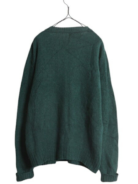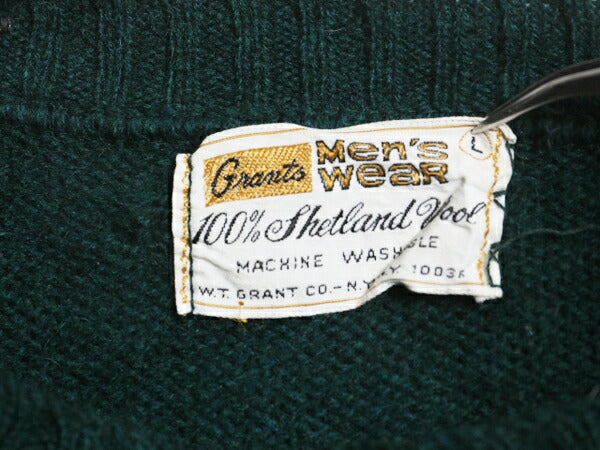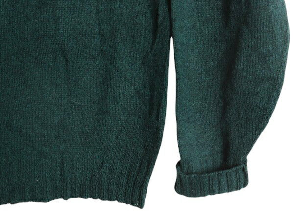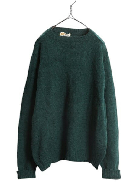 60s 70s ★ Grants シェットランド ウール ニット セーター メンズ L 古着 ヴィンテージ サドルショルダー ミドルゲージ グリーン 無地 緑